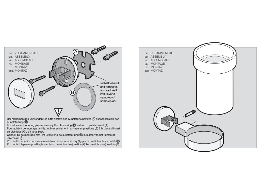 - Včetně montážního materiálu (šrouby, hmoždinky) a vyobrazeného návodu k montáži. Pro lepení jsou zapotřebí následující ZACK výrobky: ZACK Mount lepidlo (6G) výr. č. 30003/ZACK Mount lepidlo (13G) výr. č. 30004