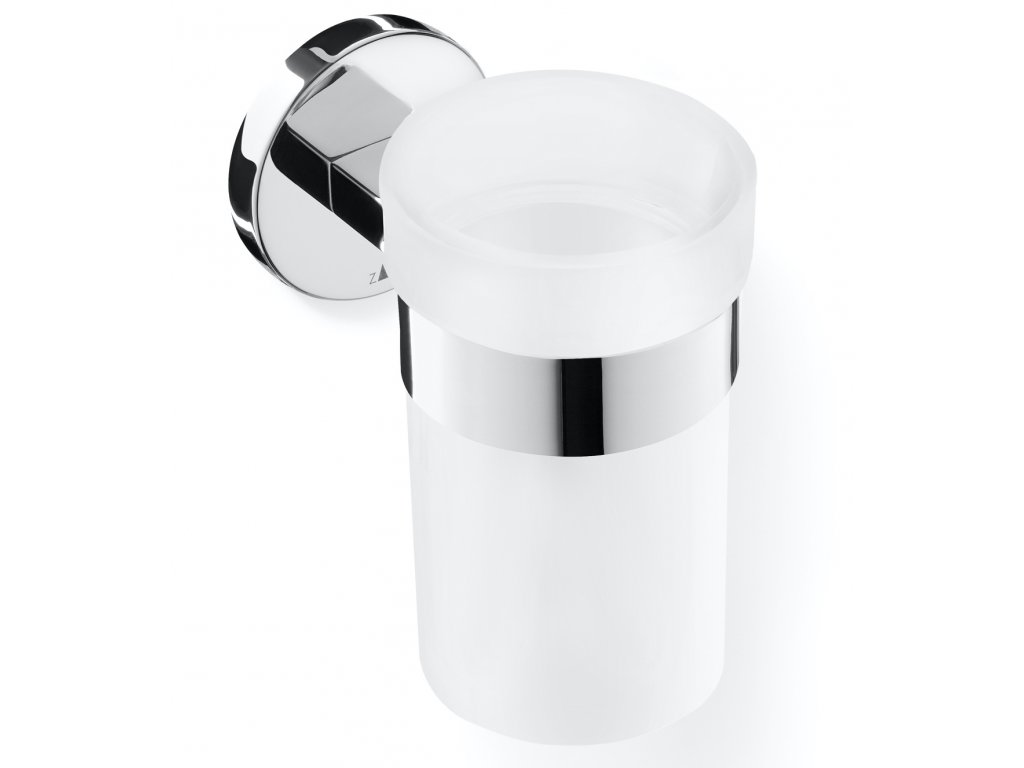 Satinovaná poloprůhledná sklenička na zubní kartáček se jednoduše zavěsí do kroužku držáku a lze ji snadno vyjmout pro čištění.