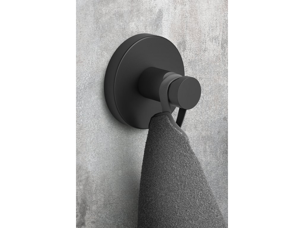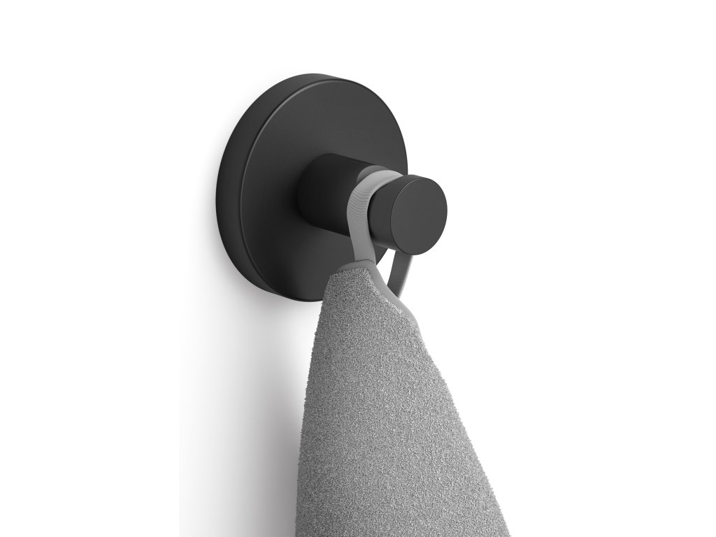 Háček na ručníky z černého práškově lakovaného nerezového oceli pro koupelny a kuchyně, praktický pro ručníky s poutkem i bez něj.