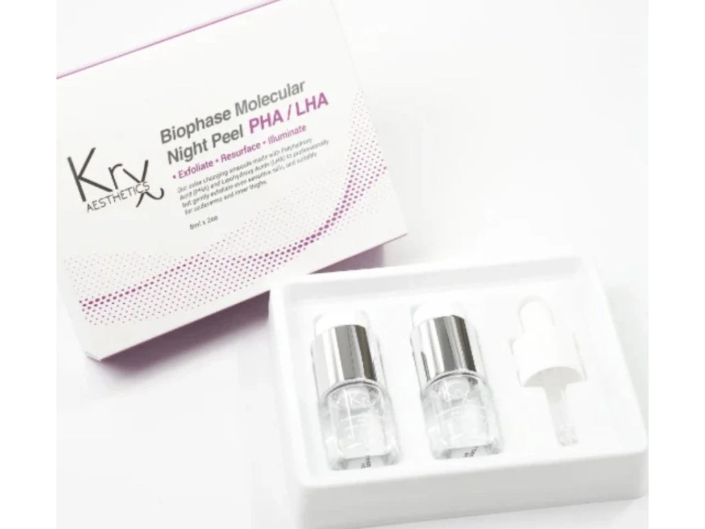 KRX Biophase Molecular Night Peel PHA / LHA je vysoce účinný noční peeling, který během spánku obnovuje pleť pomocí aktivované směsi kyselin a hydratačních složek. Dvojitá komora zajistí, že se účinné látky propojí a aktivují až těsně před použitím. Díky tomu je peeling vždy maximálně čerstvý, silný a zároveň jemný k pleti. Odstraňuje odumřelé kožní buňky, čistí póry, zjemňuje texturu, redukuje pigmentace a aknózní jizvičky, aniž by způsobil zarudnutí nebo šupinatění. Je vhodný i pro velmi citlivou pleť, rosaceu, suché partie a dokonce i citlivá místa jako podpaží či vnitřní stehna. Po probuzení bude pleť viditelně hladší, plnější, jasnější a barevně sjednocená.