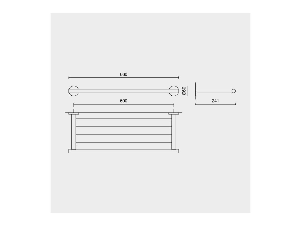 - Rozměry: 66 cm x 6 cm x 24 cm; vzdálenost otvorů (horizontálně): 60 cm